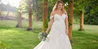 We have the largest selection of plus size wedding dresses. We have sample sizes 20-30 in store. Our stylists are the best at helping curvy brides find the perfect wedding gown!
